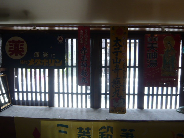 9月1日から出格子には薬屋さんのホーロー看板を展示しております。
